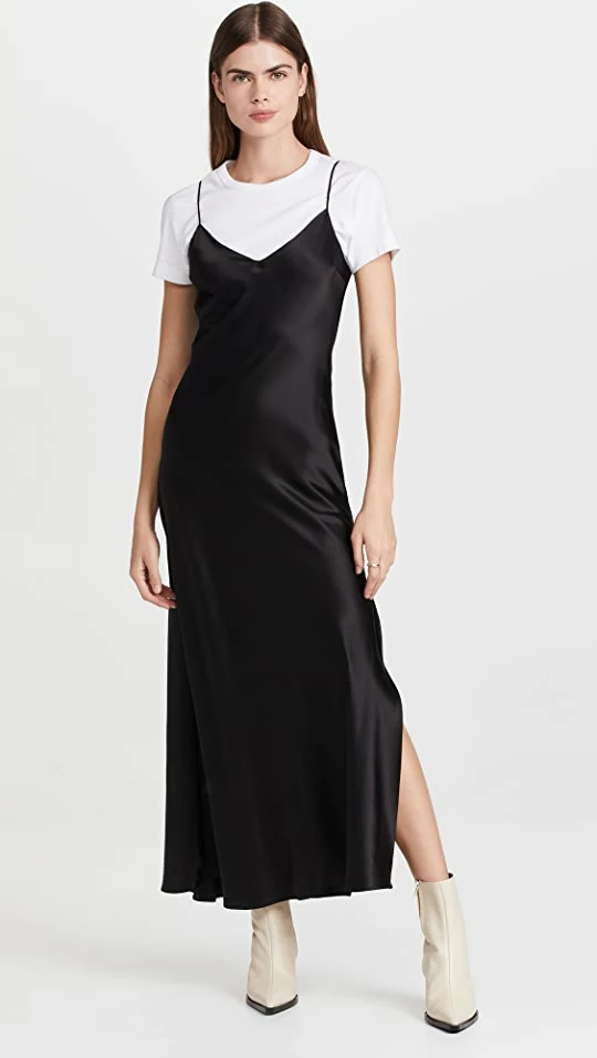 With deep side slits and lustrous black silk, this DANNIJO slip dress will always be timeless, whether you wear it unaccompanied or over a slim tee.