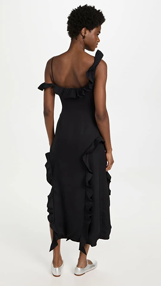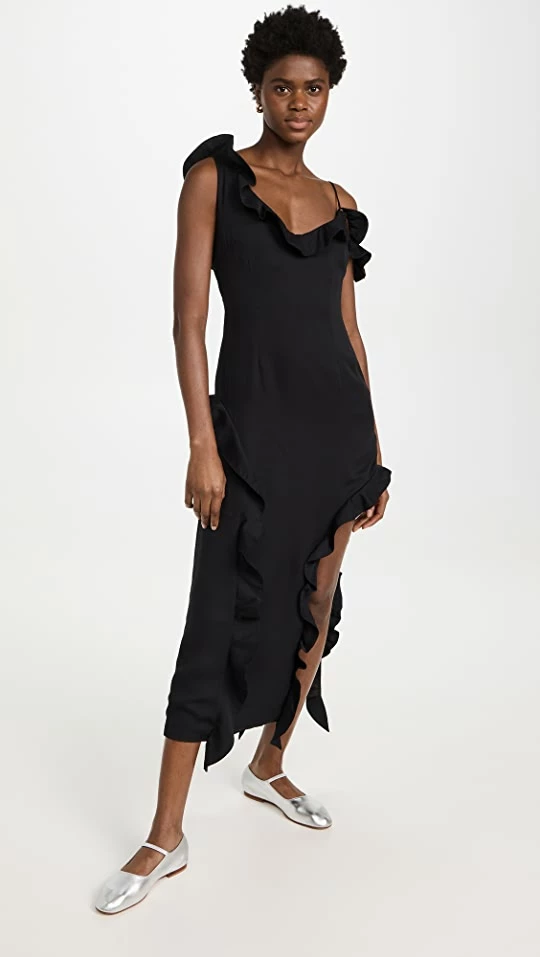 - Ruffle trim and scoop neck