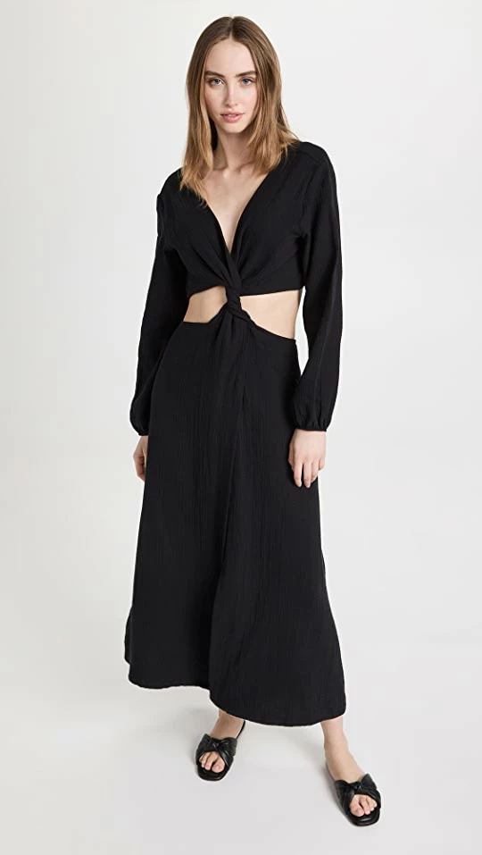 - Cutout midriff and open back