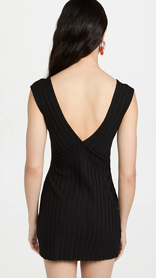A sleek classic for special occasions, this Simon Miller mini dress is crafted from ribbed black fabric and designed with a deep-V neckline and back.