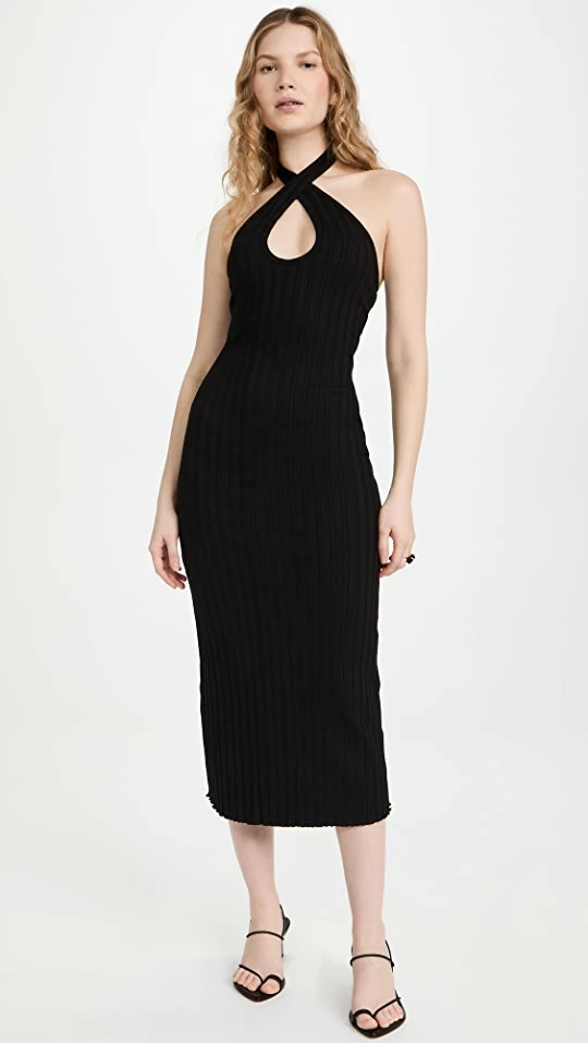 Crossover halter straps create a cutout below the neckline, lending an of-the-moment touch to this monochrome Simon Miller ribbed knit dress. Complete your outfit with tonal heels.