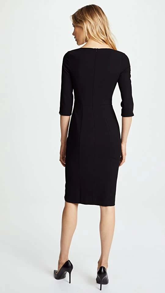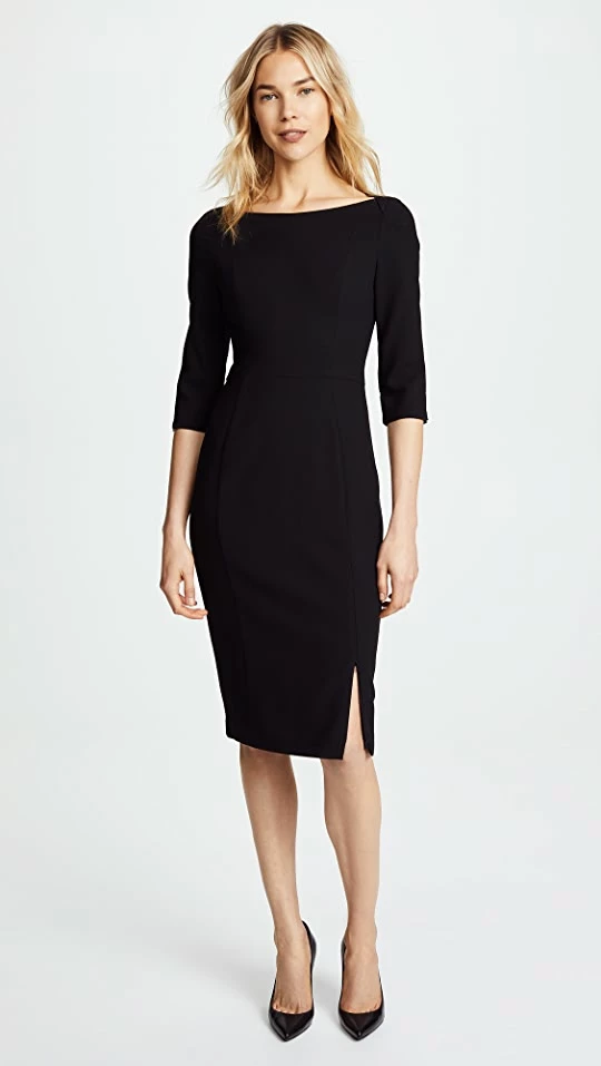 With its elegant boat neckline and sleek sheath silhouette, this Black Halo dress will always be a timeless choice for a special occasion. Go with tonal pumps or sandals to keep your look understated.