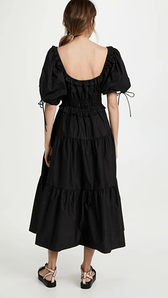 Crafted in pale poplin and featuring a tiered silhouette enhanced with ruffles and puff sleeves, this En Saison dress is a romantic addition to your warm-weather wardrobe which will easily transition from day to night with just a simple change of shoes.