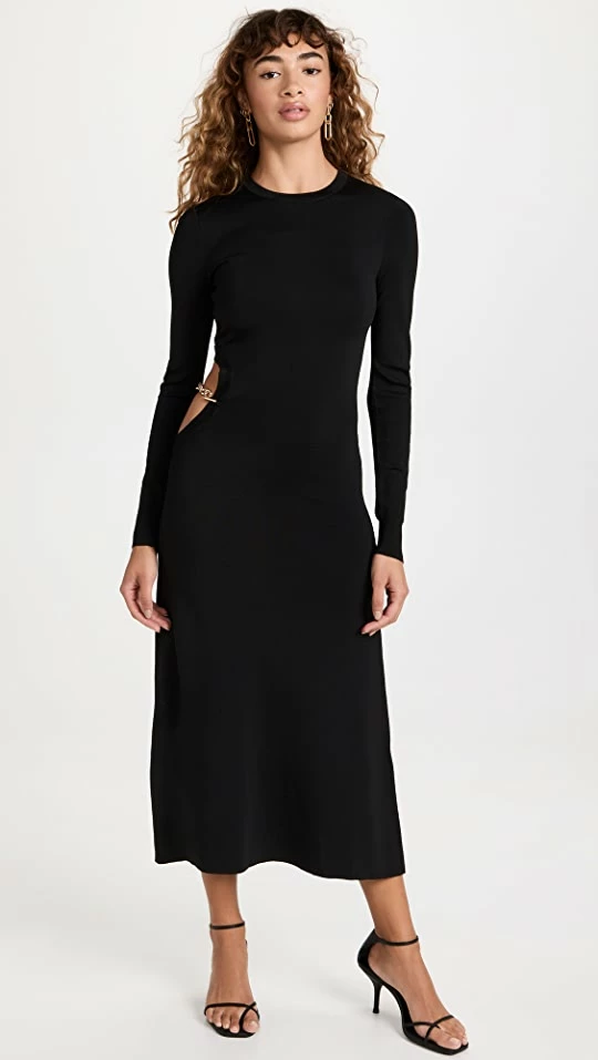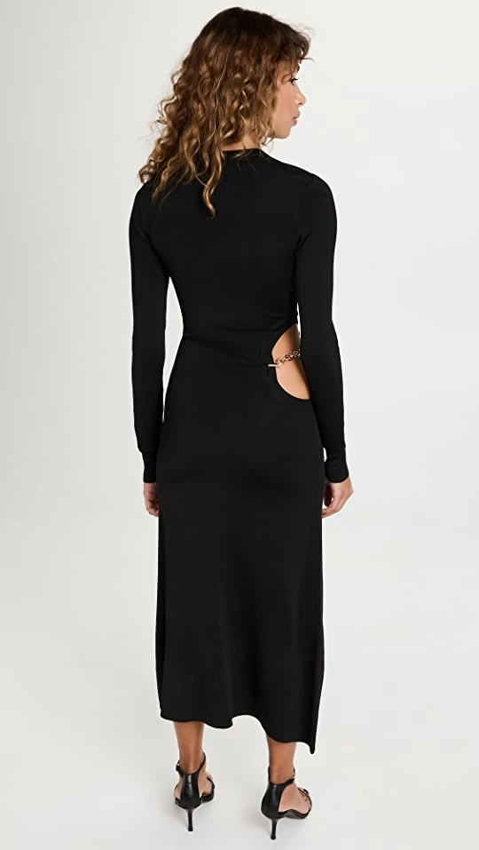 - Cutout at waist with gold-tone chain detail