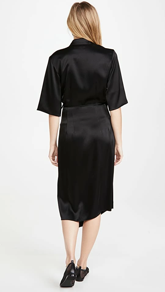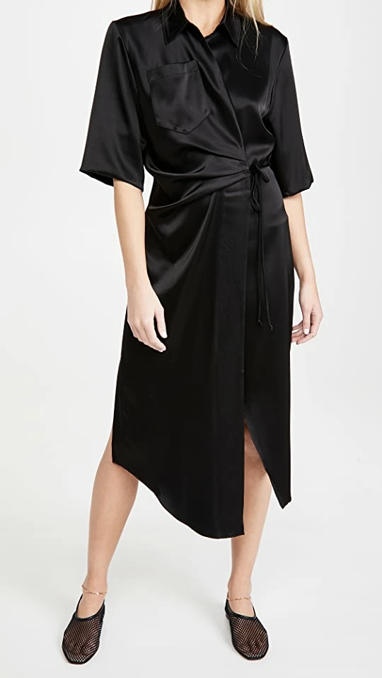Easy yet elevated, this Nanushka dress is cut from luxe satin in an elegant wrap silhouette, featuring draped fabric at the waist and alluring slits at the sides.