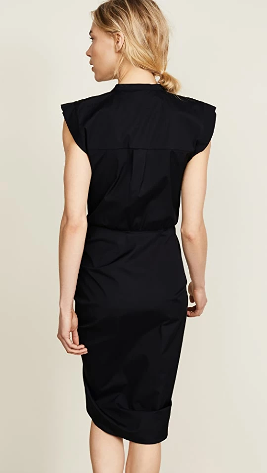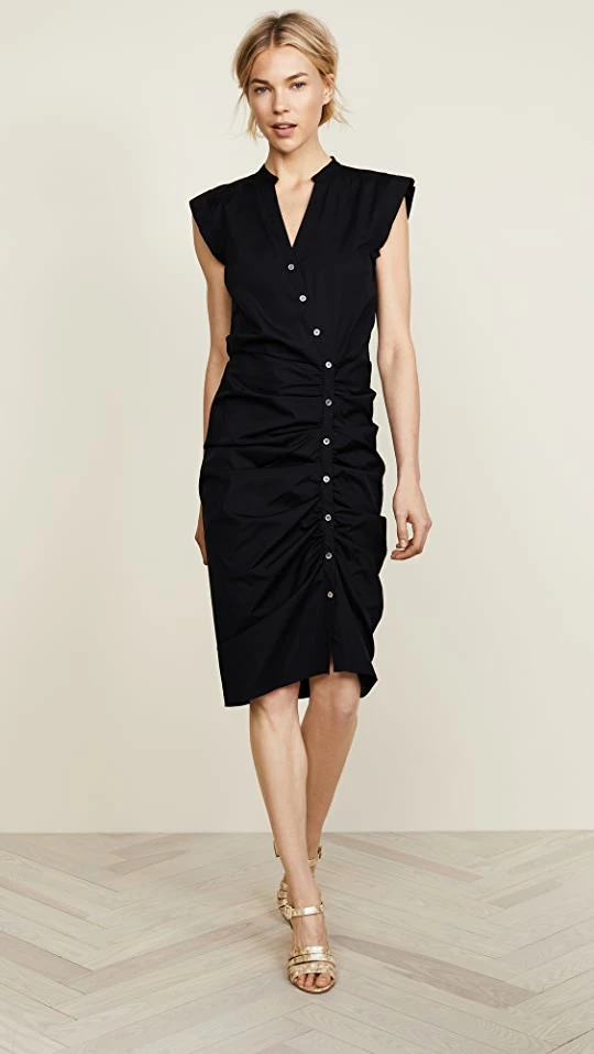 An unexpected update on a classic shirtdress silhouette. This Veronica Beard dress is crafted in crisp poplin and has ruching framing the asymmetrical button placket.
