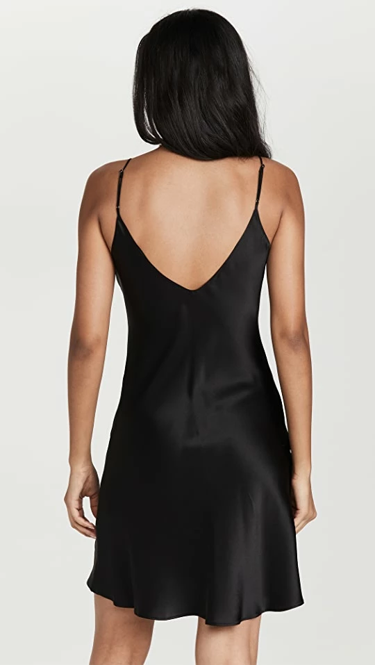 Crafted from pure silk and featuring a jet-black monochrome silhouette, this DANNIJO slip dress is a sleek staple that’ll never go out of style.