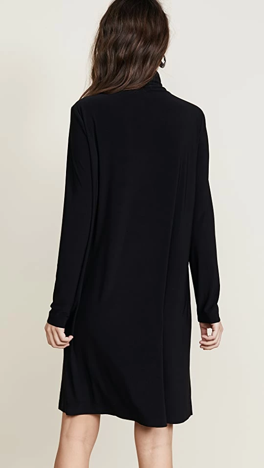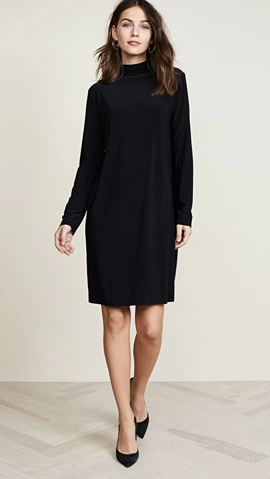 A simple, versatile black basic, this Norma Kamali dress is updated with a turtleneck and raw edges for an understated look that just needs the right pair of shoes to suit the occasion.