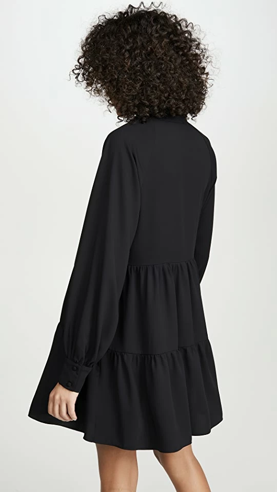 A little black dress that is anything but basic. This versatile Amanda Uprichard dress features a relaxed silhouette finished with a tiered, ruffled hem.