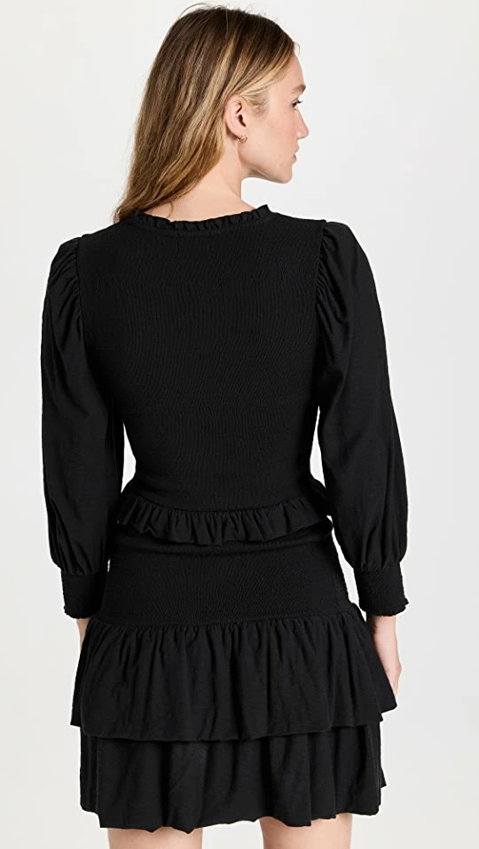 Comfy and polished in equal measure, this Nation LTD black mini dress is crafted from pure Peruvian cotton, and is embellished with soft smocking and pretty ruffles. It’s the sort of piece that’ll go from day to night with just a simple change of shoes.