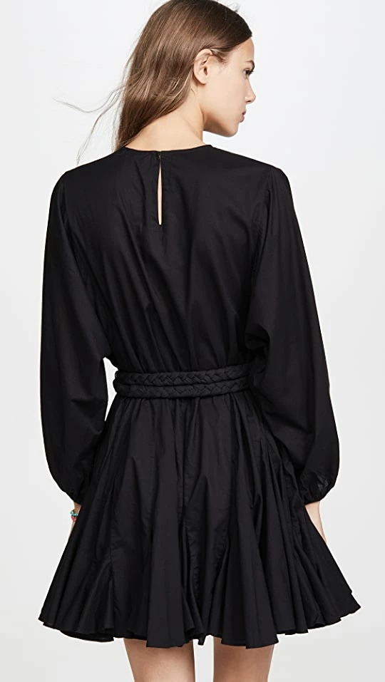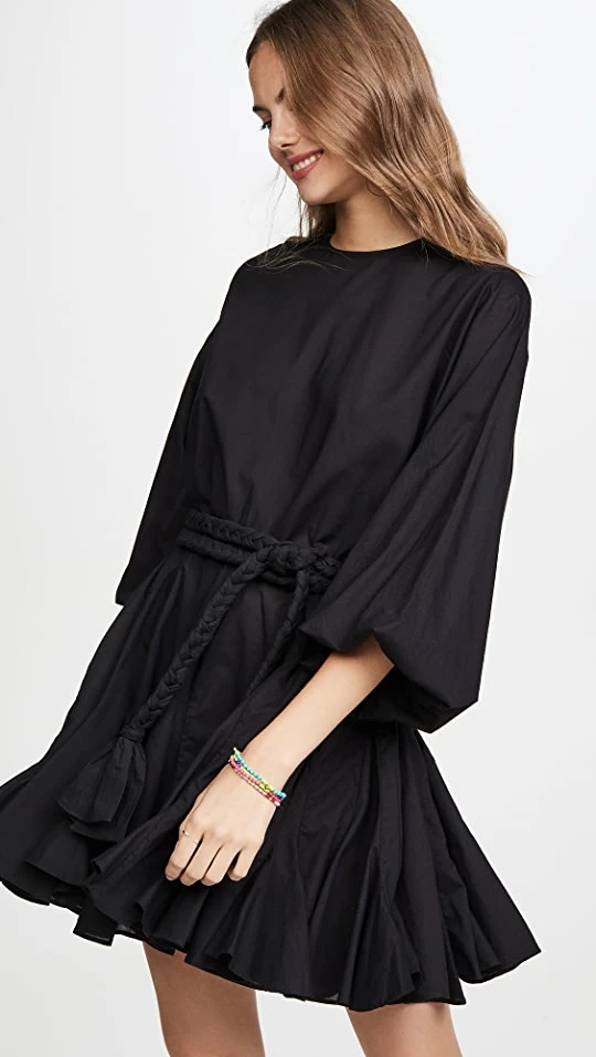 A charming Rhode day dress in crisp black cotton, featuring a braided belt that keeps the look tidy. To complete your outfit, all you’ll need are simple sandals and a few colorful bracelets.