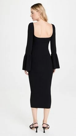 Flash Sale π₯ New π Self Portrait Ribbed Knit Bow Bust Midi π π Dress Black 𧨠β¨