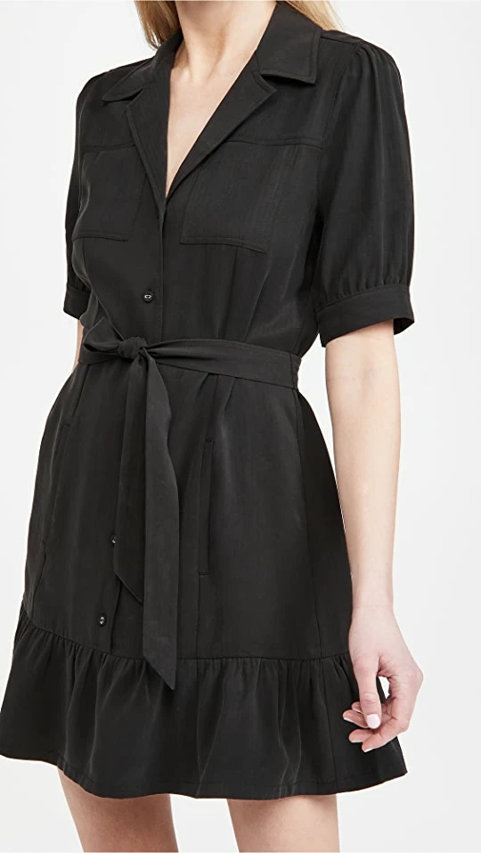 A ruffled hem brings a pretty finish to this low-key PAIGE dress, which gains a touch of utilitarian style from patch pockets and notched lapels.